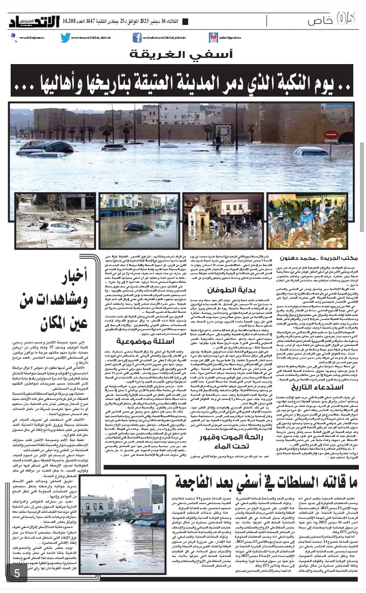 نشرة الأرصاد الجوية التي أذيعت في الحادية عشرة صباحا من يوم الأحد 14 دجنبر لم تذكر شيئا عن أسفي ، وفي نشرة محينة نشرت بعد الفاجعة تم إدخال أسفي ..هذا التفصيل ..معناه ألا أحد كان يتوقع ما حصل حتى راصدو الأحوال الجوية ، ومع الاستهتار الذي يميز مدبري الشأن المحلي فإن هذه النتائج الرهيبة والكارثية كانت متوقعة حسب دردشات متعددة مع فاعلين وساسة محليين يتابعون الوضع عن كثب .