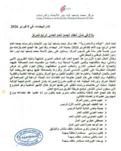 ويأتي هذا الجمع العام في سياق تأكيد المركز على استمرارية رسالته البحثية والفكرية، وفاءً لمسار مؤسسه، وتعزيزًا لدوره في مواكبة قضايا الوطن والديمقراطية.
