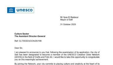 إعتراف رسمي من طرف منظمة اليونيسكو بأن” آسفي مدينة عالمية للإبداع بمجال الخز ف