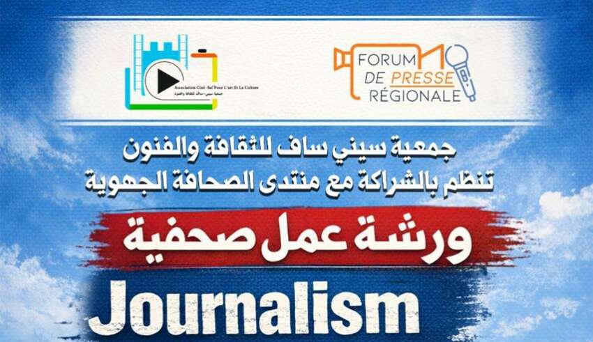 تنظم جمعية سيني ساف للثقافة والفنون بشراكة مع منتدى الصحافة الجهوية ورشة عمل صحفية يوم الجمعة 6 مارس 2026 على الساعة العاشرة صباحاً بمقر المنتدى، بهدف تعزيز مهارات المهتمين في مجال الصحافة ومواكبة مستجدات الإعلام المعاصر.